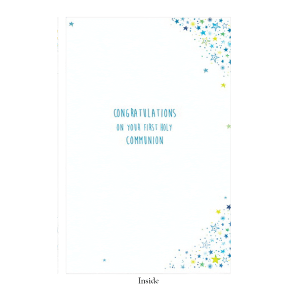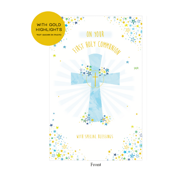 COMMUNION CARD BLUE CROSS WITH GOLD HIGHLIGHTS