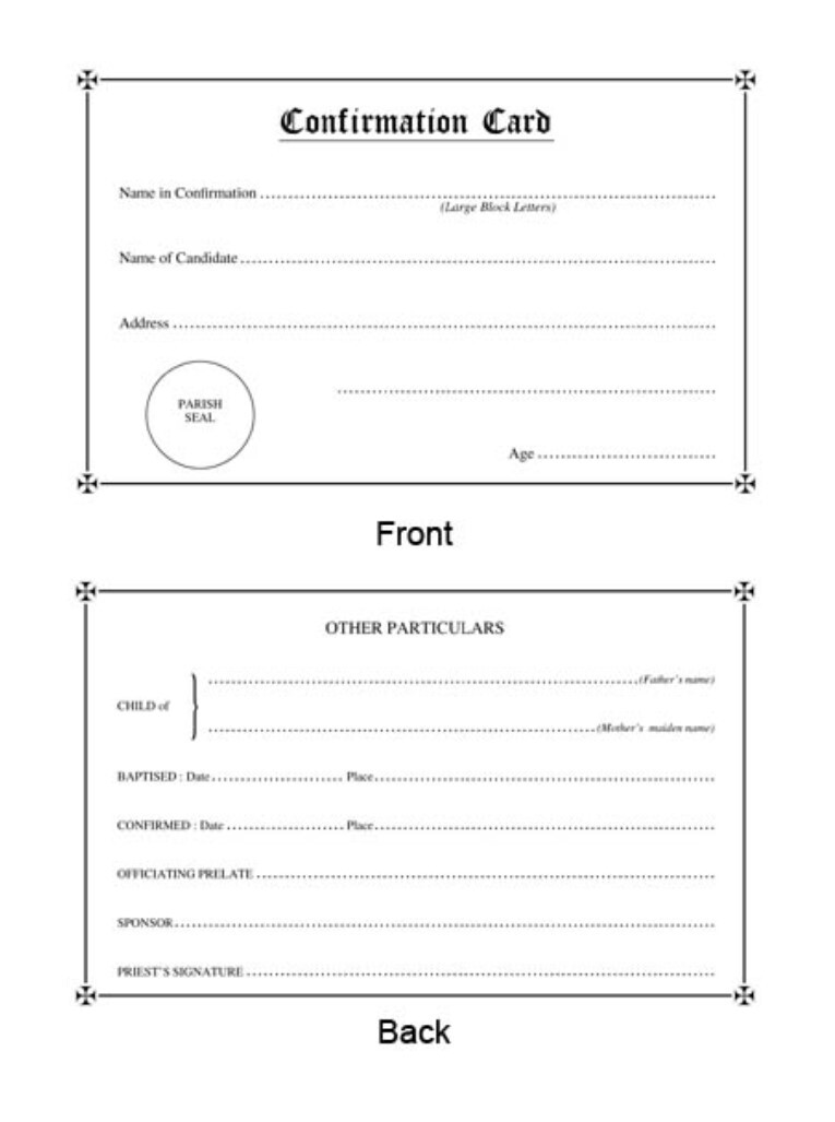CONFIRMATION CANDIDATE CARD PKT OF 50 ON WHITE CARD
