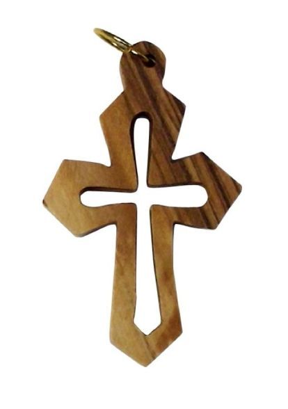 CROSS CUT OUT CHARM POINTY 3.5CM OLIVE WOOD