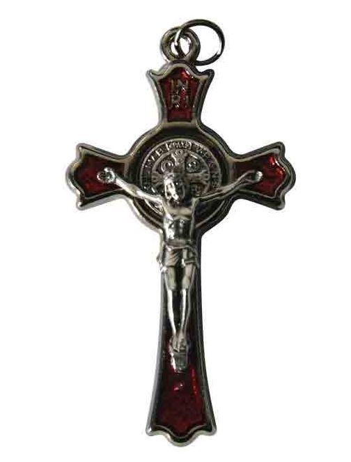 CRUCIFIX ST BENEDICT RED WITH MEDAL 6cm