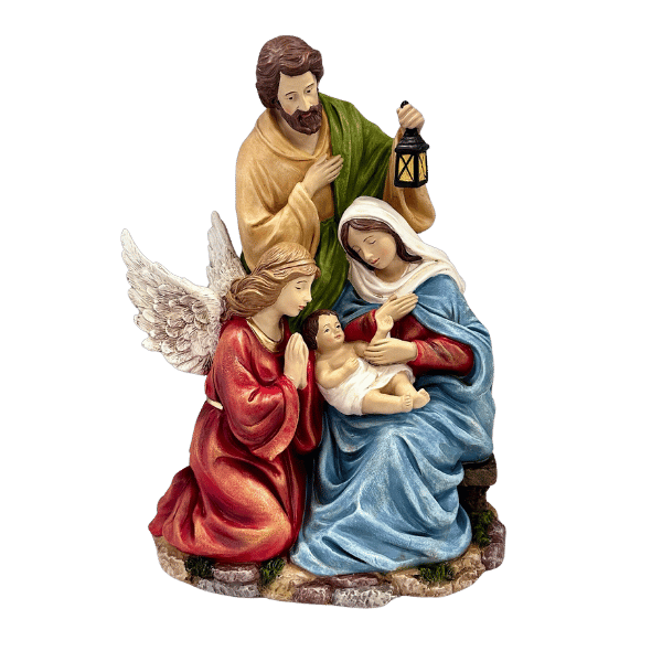 HOLY FAMILY NATIVITY WITH ANGEL 310MM