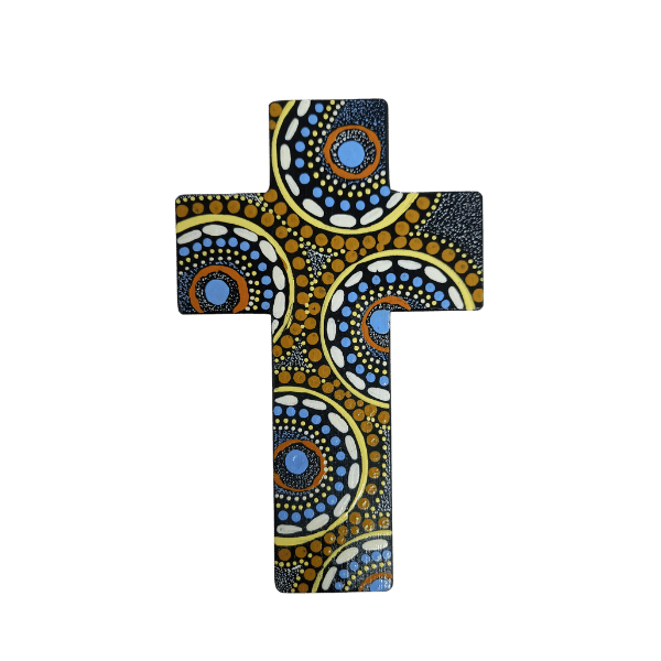 INDIGENOUS CROSS HAND PAINTED 15CM G2
