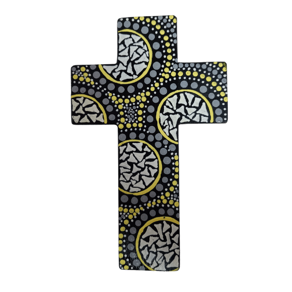 INDIGENOUS CROSS HAND PAINTED 15CM R