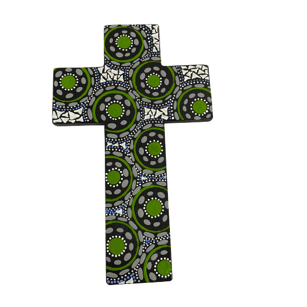 INDIGENOUS CROSS HAND PAINTED 20CM AA2
