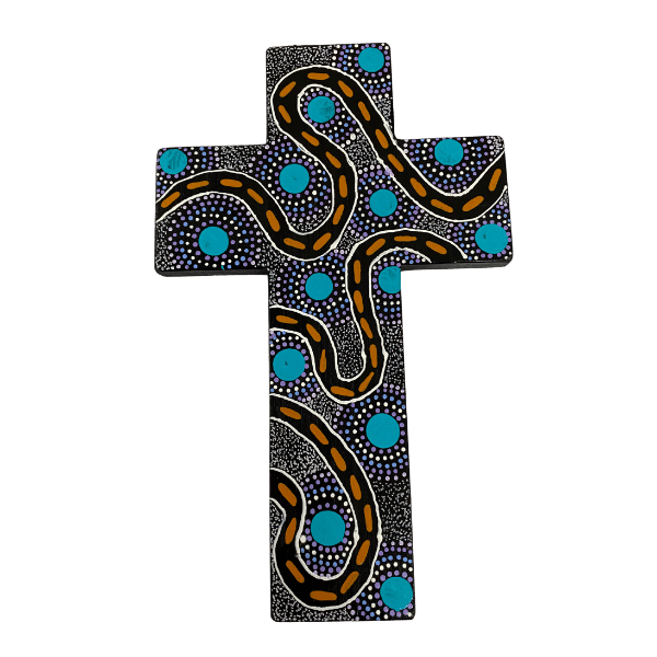 INDIGENOUS CROSS HAND PAINTED 20CM PP1
