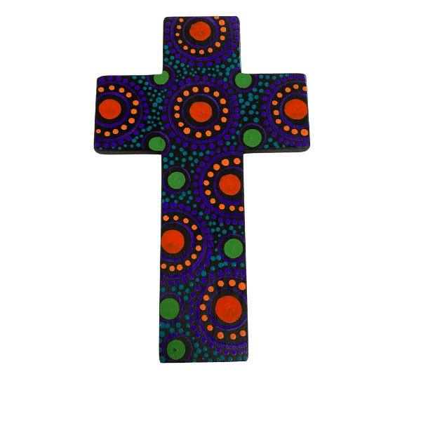 INDIGENOUS CROSS HAND PAINTED 20CM SS