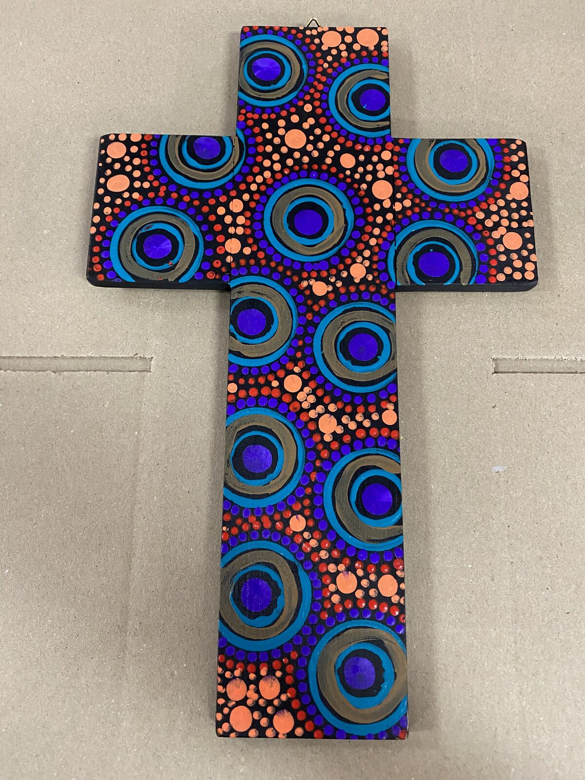 INDIGENOUS CROSS HAND PAINTED 30CM CCC