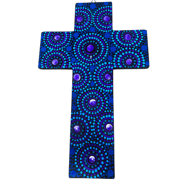 INDIGENOUS CROSS HAND PAINTED 30CM EEE2