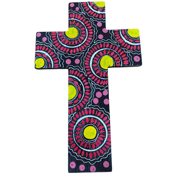 INDIGENOUS CROSS HAND PAINTED 30CM QQQ