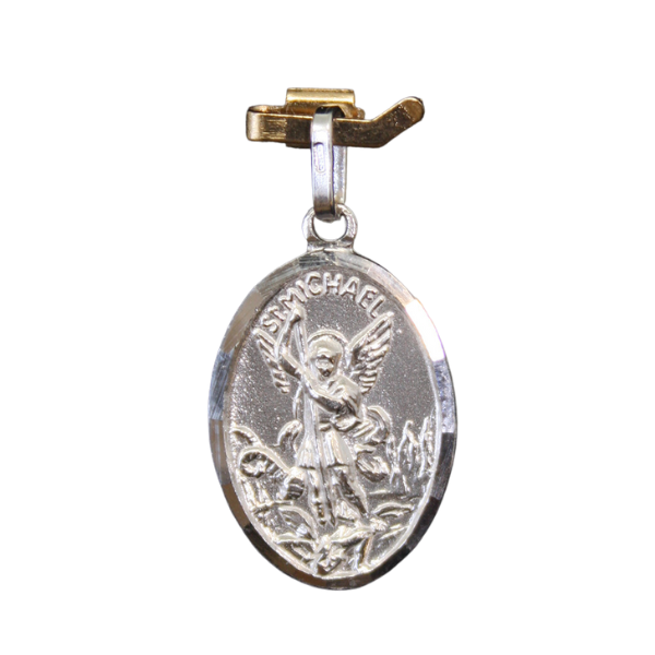 MEDAL ST MICHAEL STERLING SILVER OVAL 22mm
