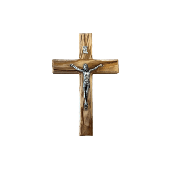 OLIVE WOOD PLAIN CRUCIFIX METAL BODY 16CM