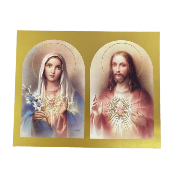PRINTS COLOURED 10 X 8 Sacred Heart of Jesus and Immaculate Heart of Mary side by side