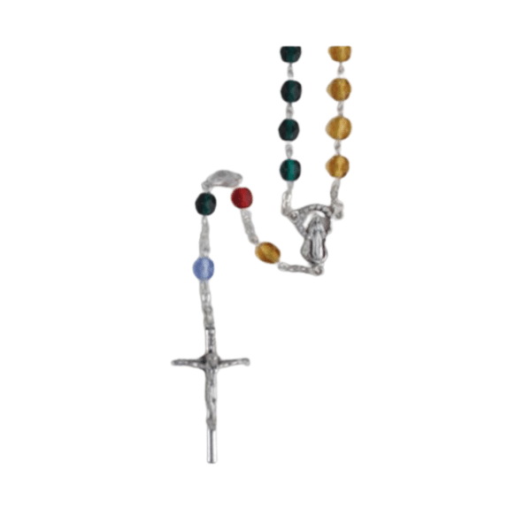 ROSARY GLASS MISSION MULTI COLOUR BEADS BOXED