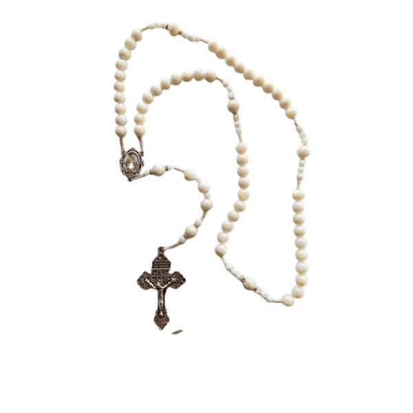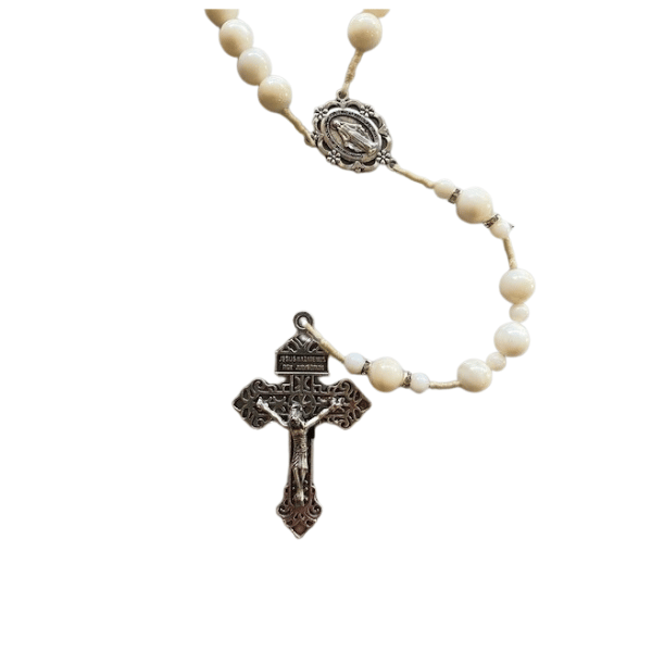 ROSARY WHITE STONE WITH SILVER MIRACULOUS CENTREPIECE
